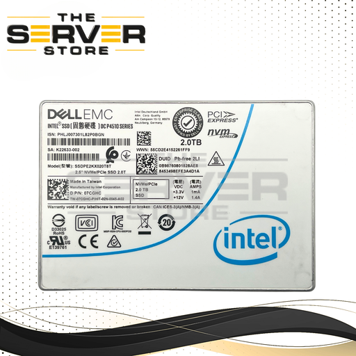 IntelDell 2TB NVMe U.2 2.5" PCIe Gen3 x4 SSD | Intel DC P4510 | SSDPE2KX020T8T | 07CGHC | 7CGHC The Dell 2TB NVMe U.2 SSD, powered by the Intel® Data C...