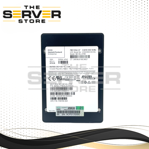 HPEThe HPE 3.84TB NVMe x4 U.2 PCIe 3.0 2.5" SSD Samsung PM1723b (Part Numbers: VO003840KWVMU, P09769-002, MZ-WLL3T8B, MZWLL3T8HAJQ-000H3) delivers ent...